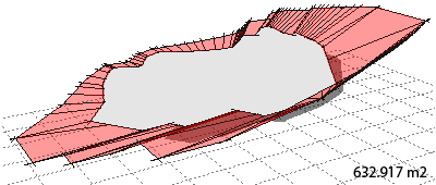 Once you have this shape, it actually represents a single slice through a ‘conical’ volume which represents the area of actual required shading. Any slice within this volume will equally shade the site.