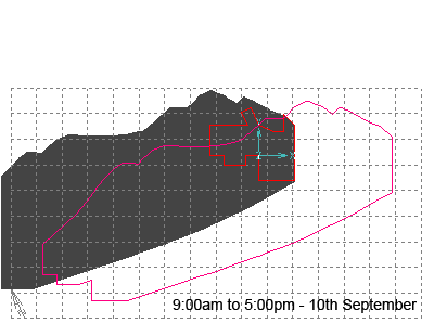 The result is the required shape for a flat shade at the specified offset above the site. The animation in Figure 8 below shows shadows cast into the site each hour of the day on the 10th of September (the same as 1st April) and the 21st June (the Summer Equinox). There may look to be excess shade, but there really isn’t.