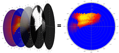 direct solar radiation mapped over the same sky segments.
