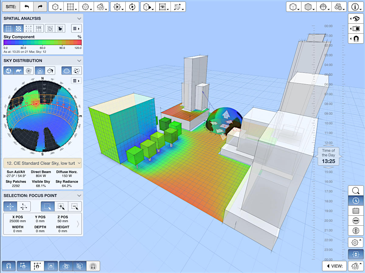 I will obviously support arbitrary CAD/BIM geometry with more complex shapes and forms in the future. However, with this app, I really wanted the focus to be on the dynamic relationship between the model and the results, without needing a site file to import or having to first learn a quirky new 3D drawing system before being able to actually do or see anything.